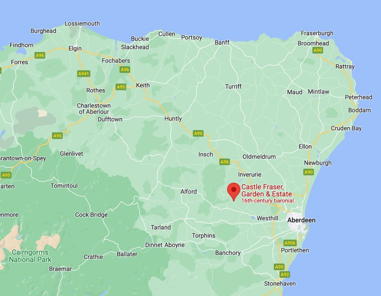 Castle Fraser is located near Craigearn in Aberdeenshire; 4 miles north of Dunecht and only 16 miles west of Aberdeen. The only way to get to the castle is by driving. I would highly suggest renting a car if you don't already have one, especially if you want to do the North East 250 or do more sightseeing around the area.