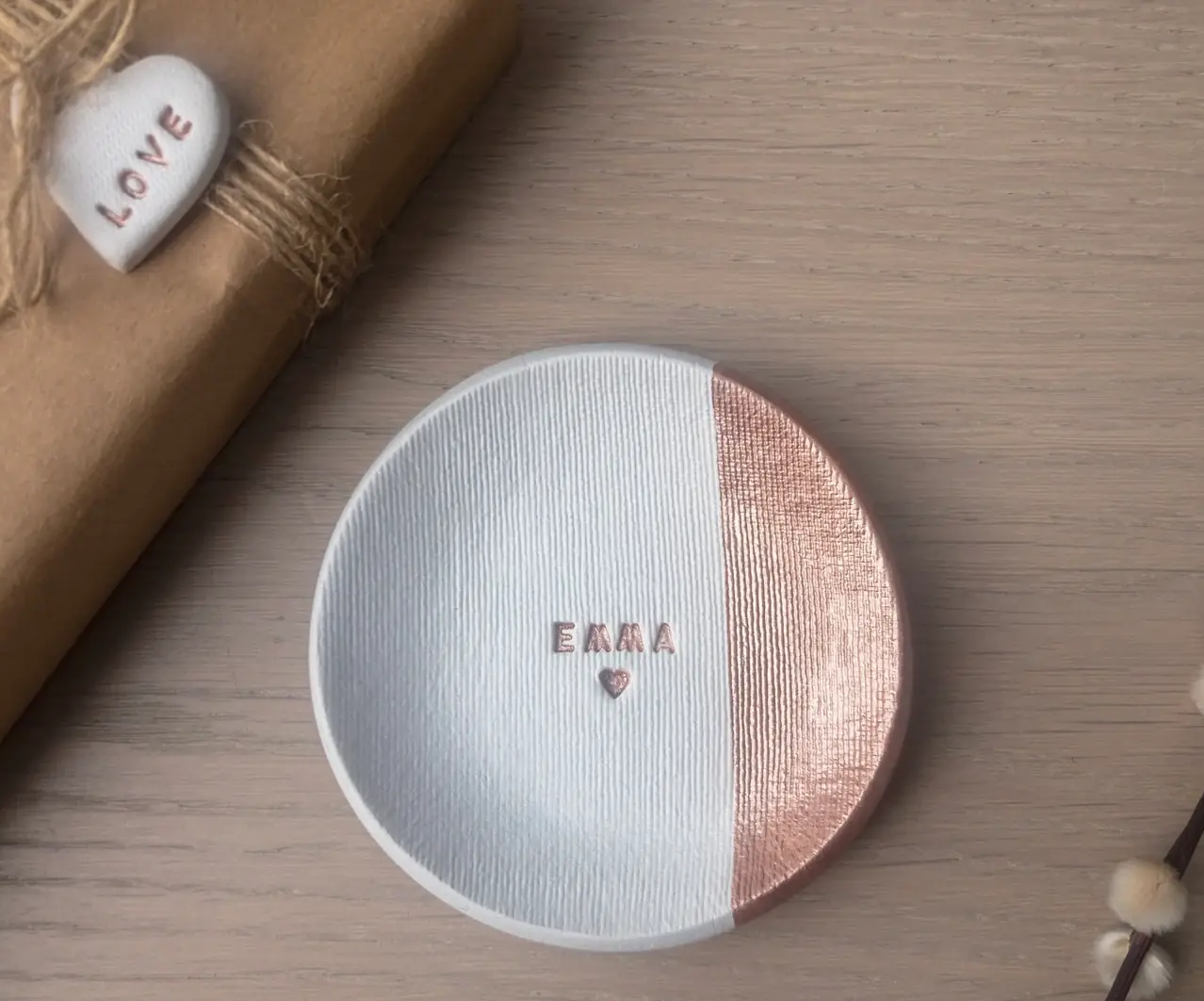 Measuring 9cm in diameter, this handmade dish is crafted from air-dry clay and is perfect for storing jewellery, keys, or anything precious. A cute and thoughtful way to help your bestie keep their bits and bobs in check!
