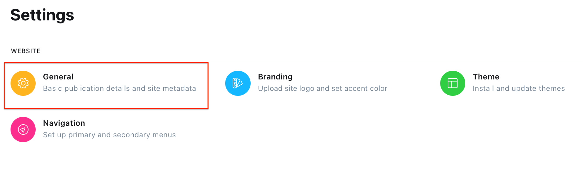 Within your Ghost settings and under the 'website' section, click on the 'general' tab (highlighted in the picture below).