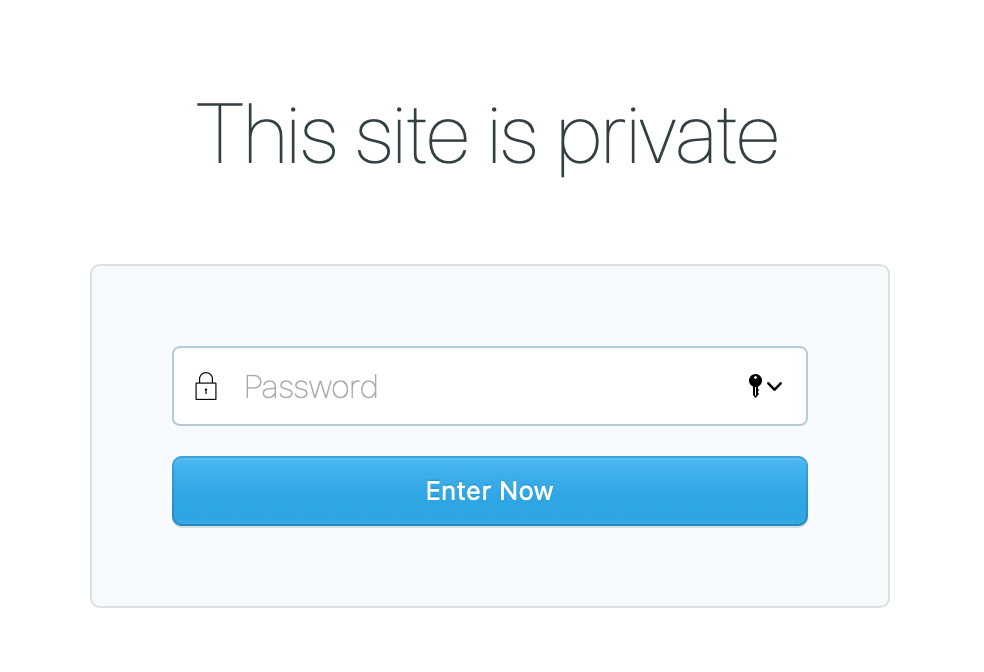 If you have made your website private, you will be given a password for the site. You can give this password to anyone you want to have access to the site. So, when someone tries to access it, they will be met with this: