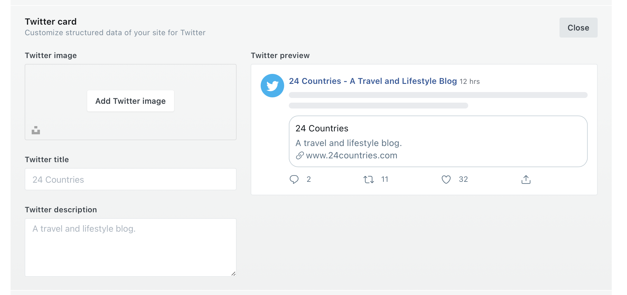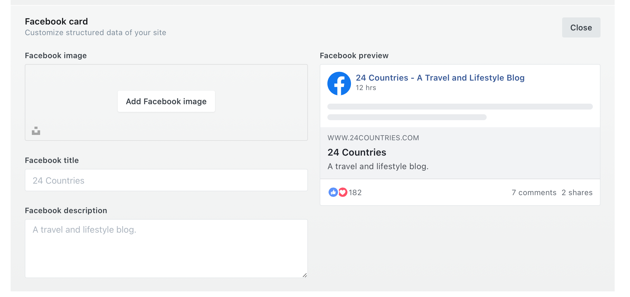 You can also optimise your metadata for Facebook and Twitter, which is very similar to the metadata you provided for search engines above.